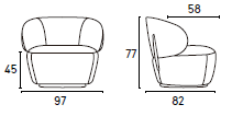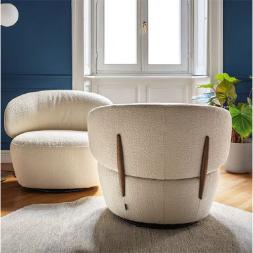 Кресло MARA имеет поворотное металлическое основание. Мягкая тканевая обивка, обволакивающая тело, дополнена выразительными деревянными вставками на спинке.