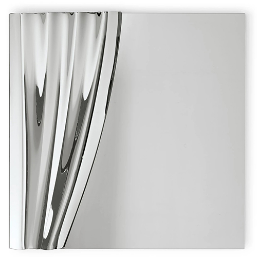 SIPARIO — это квадратное зеркало с романтическим дизайном, сочетающее фигурное и плоское стекло. Имитируя занавес театра, зеркало отличается двумя частями: отражающей и той, которая прикрывает изображение, символизируя контраст между тем, что показано, и тем, что остается скрытым.